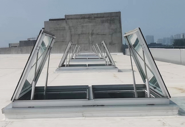 此類天窗有三種控制方式:通用控制方式、智能控制方式、智能網(wǎng)絡(luò)控制方式。以上控制方式均可消防聯(lián)動(dòng)控制,與消防報(bào)警連接。適用于采光為主必要時(shí)開啟的大型生產(chǎn)車間、大廳、體育館等。
