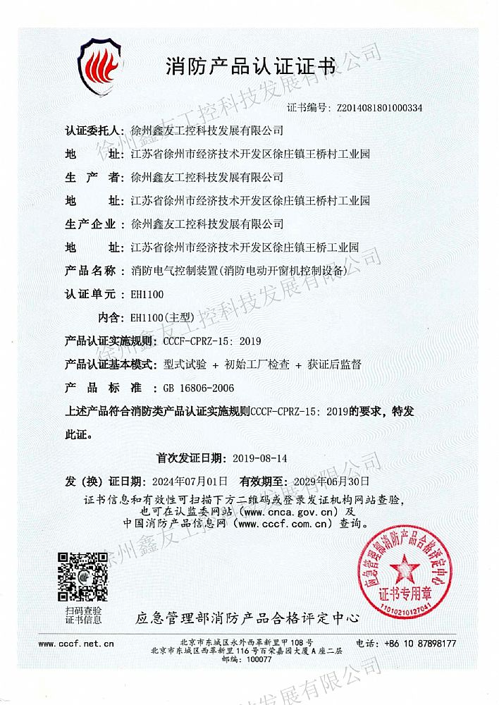 消防產(chǎn)品認證證書EH1100