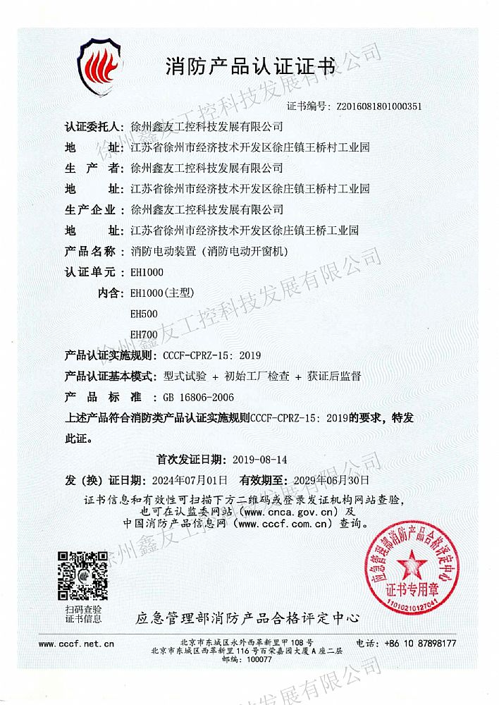 消防產(chǎn)品認證證書EH1000...