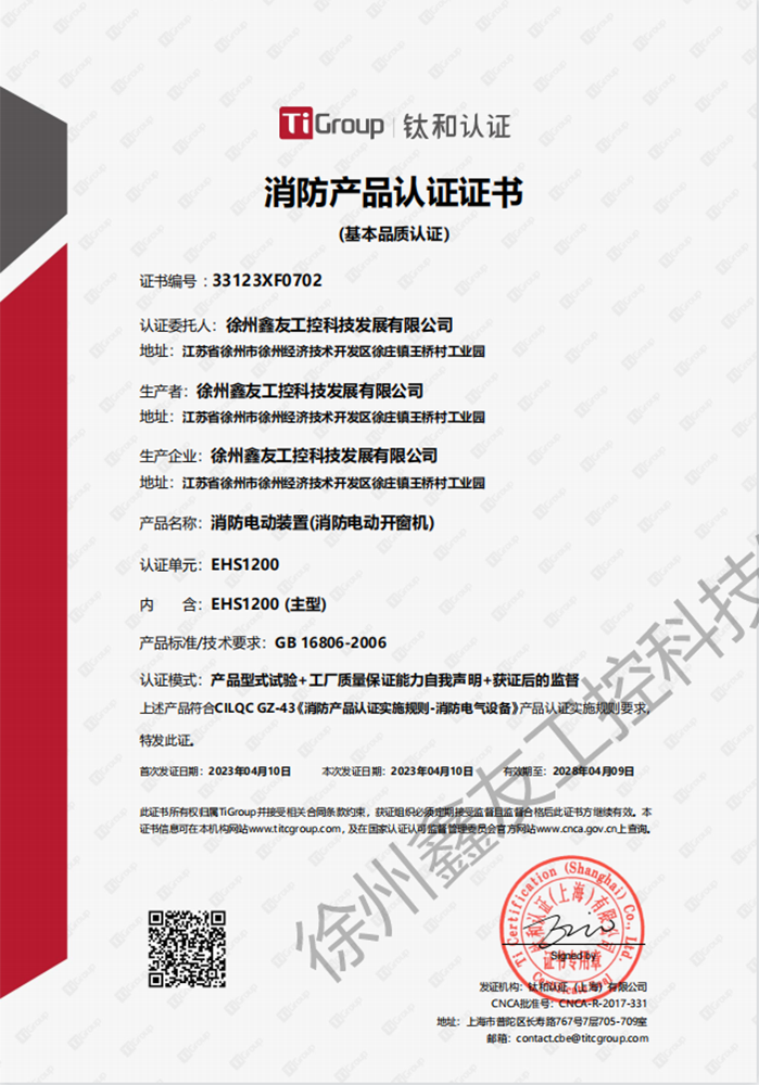 EHS1200消防產(chǎn)品認(rèn)證證書