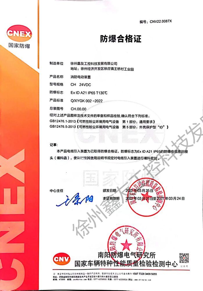 電動(dòng)鏈?zhǔn)介_(kāi)窗機(jī)防爆合格證書(shū)