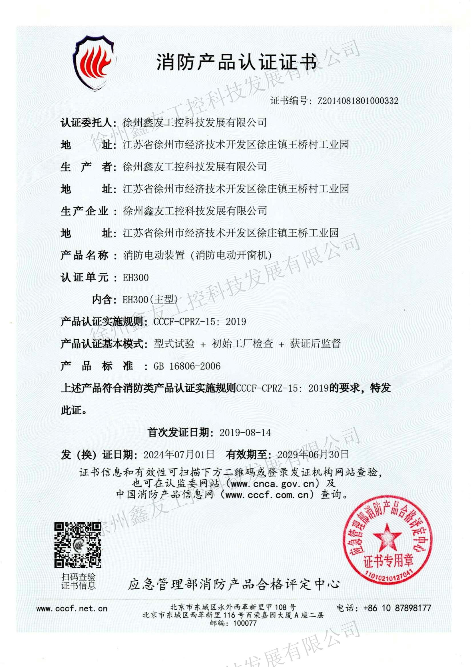 消防產(chǎn)品認(rèn)證CT300(2019.8.14-2024.8.13)
