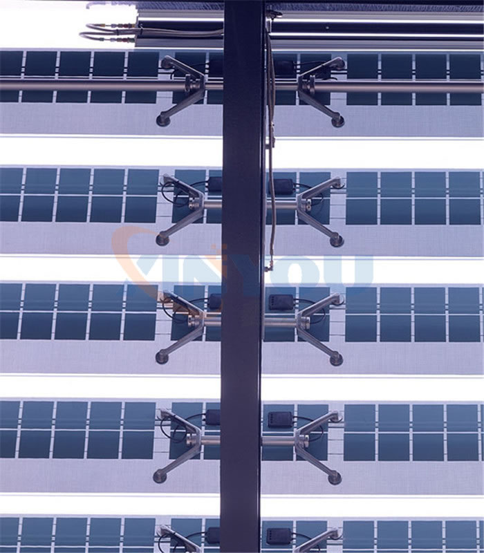 光伏百葉,能夠有效的將太陽能轉(zhuǎn)化為電能、動能,同時百葉滿足日常的采光、遮陽這樣功能。光伏百葉環(huán)境控制單元可以預置對風、雨、光、溫、煙等感應參數(shù),使之通過外置感應器,對超限值作出及時回應進而控制百葉動作,完全實現(xiàn)了綠色環(huán)保節(jié)能的建筑理念。