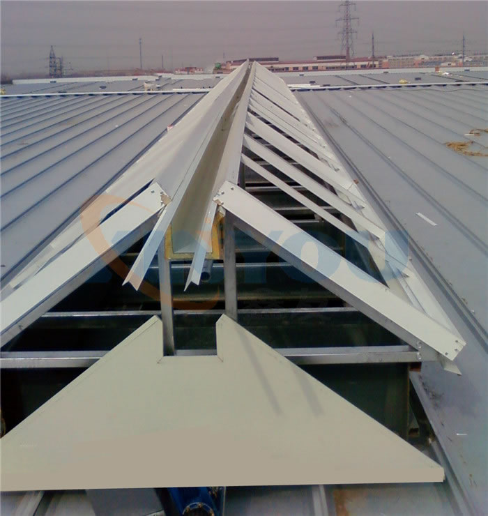 ◆ Triangle Skylight and Linear Skylight areapplied to the buildings, used for mainly lighting, opened if necessary. Themaximum opening angles are 60° and 90°.